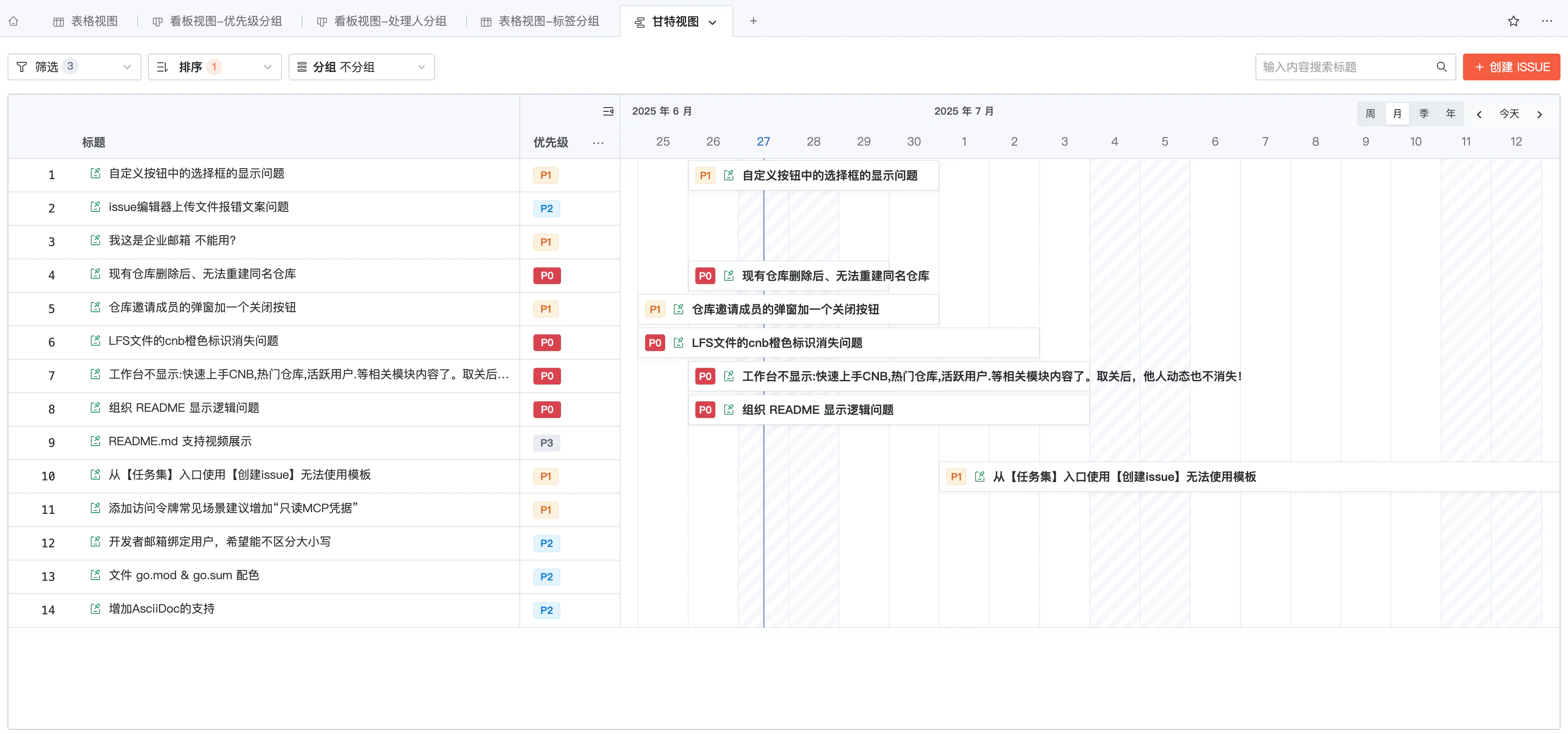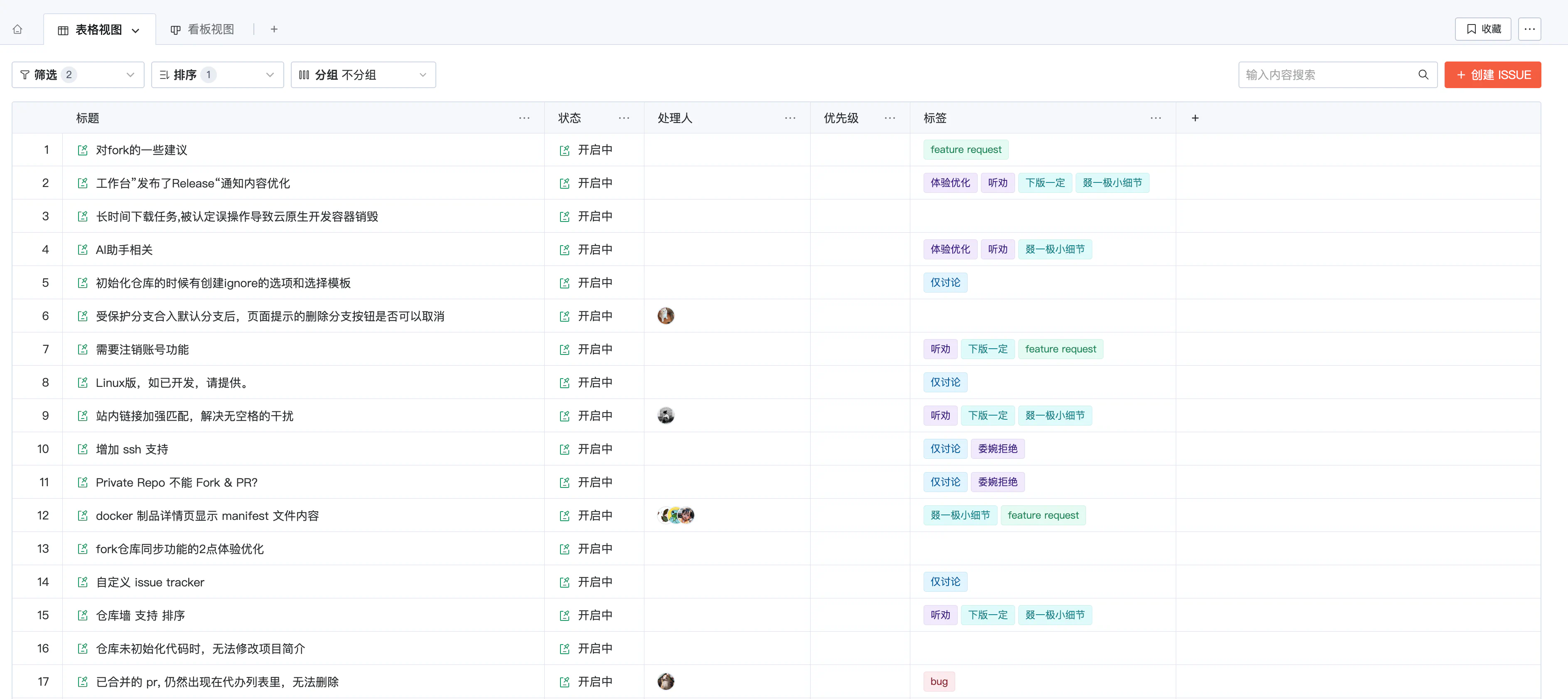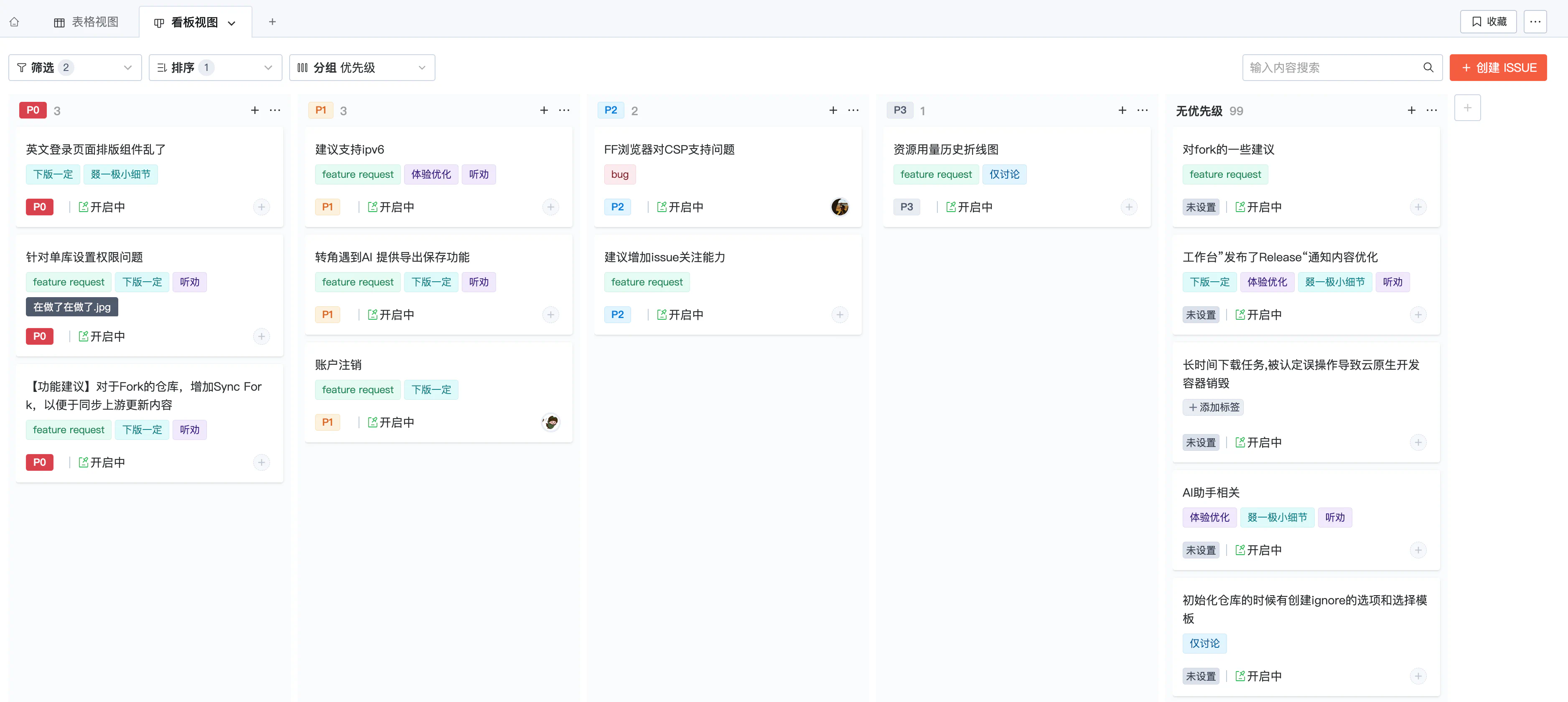 自由创建/切换表格视图、看板视图,以不同视角管理 Issue/PR。