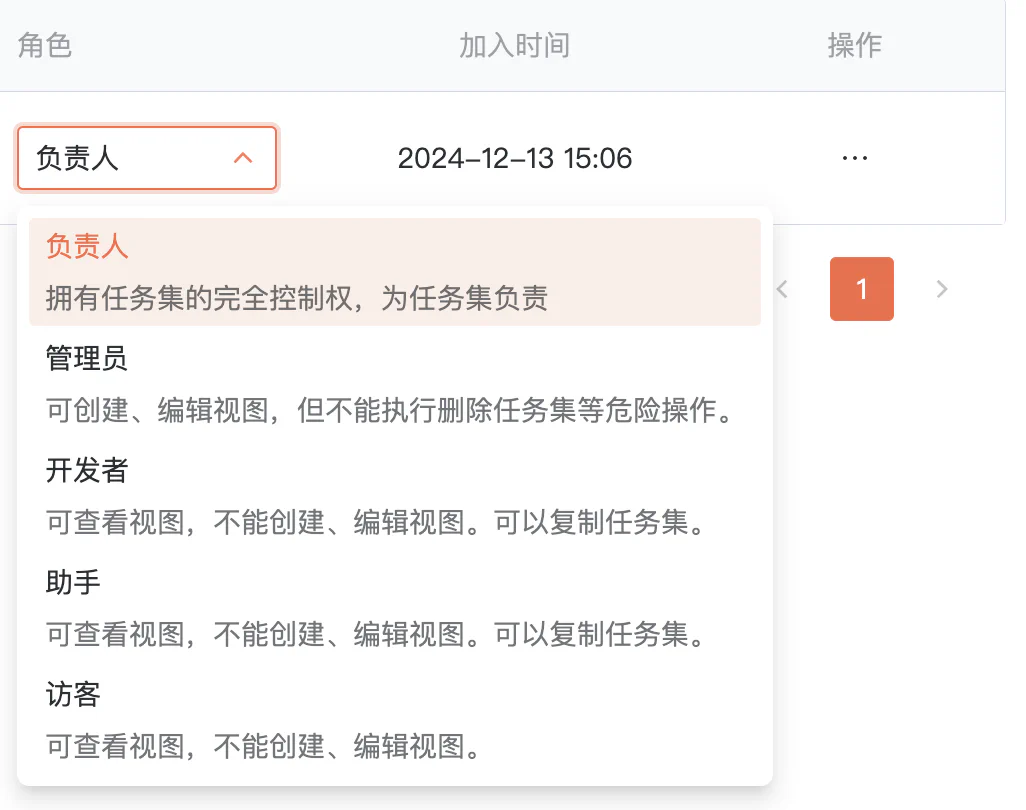 成员角色权限如下: